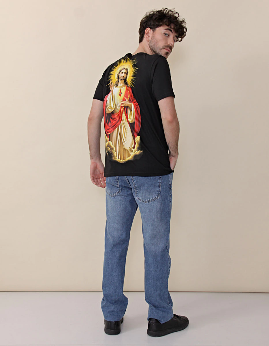 Un diseño lleno de fe, amor y devoción. Confeccionada en algodón peinado para máxima comodidad y con estampa en serigrafía de alta calidad.